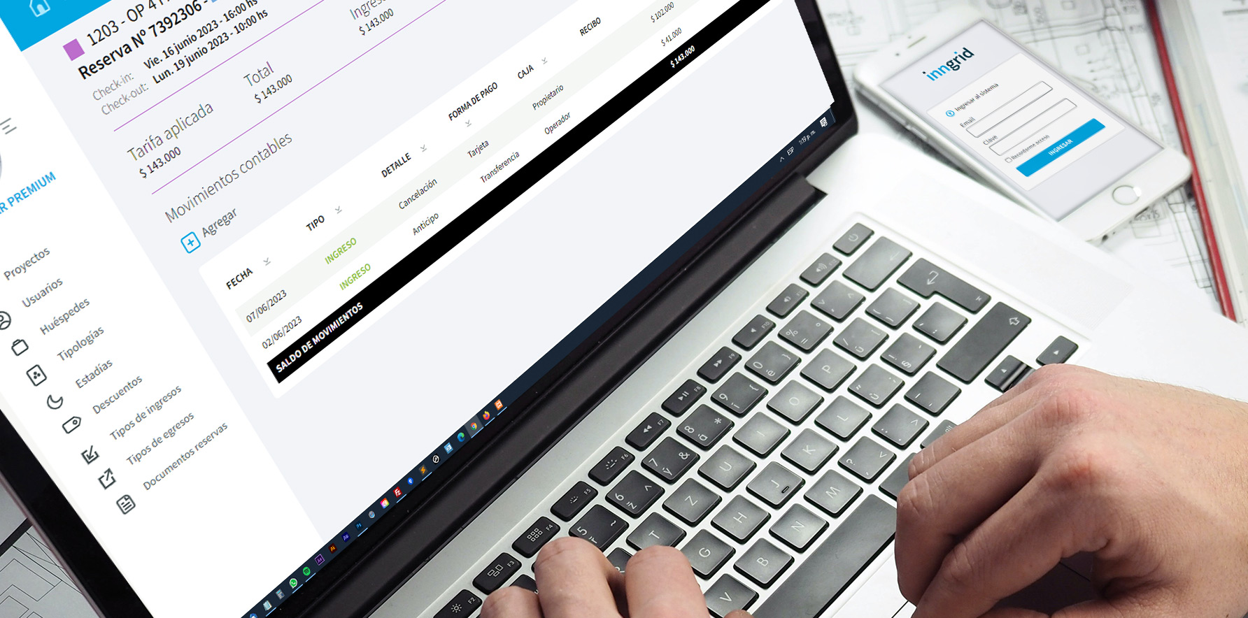 Con inngrid® vas a poder gestionar en la nube las reservas de tus proyectos de alquileres temporarios. Con un sistema de usuarios y roles, el software permite la carga de las reservas, sus movimientos contables y la generación de las liquidaciones a los propietarios de las unidades, validando las mismas y manteniendo el control sin mayores costos.