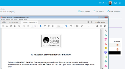 - Podrás generar PDFs con los datos de las reservas y sus huéspedes.